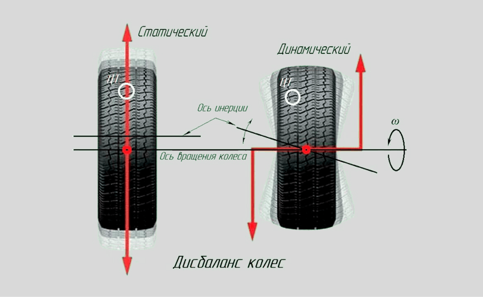 Существует два вида дисбаланса: статический и динамический. Статический дисбаланс возникает, когда масса колеса неравномерно распределена по его ширине. В этом случае колесо будет иметь смещённый центр тяжести, что приведёт к вибрации при вращении. Динамический дисбаланс возникает из-за неравномерного распределения массы по окружности колеса. Он может проявляться в виде вибрации руля или кузова при движении автомобиля.